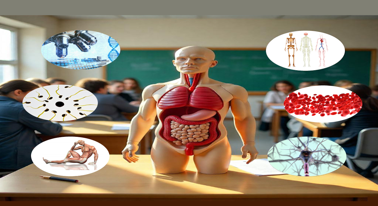 A tananyag magában foglalja az immunitást és a járványügyi alapismereteket is. A főbb témák közé tartozik a mozgási, keringési, légző, emésztő és kiválasztó szervrendszerek, valamint a szaporodási szervrendszer működése.